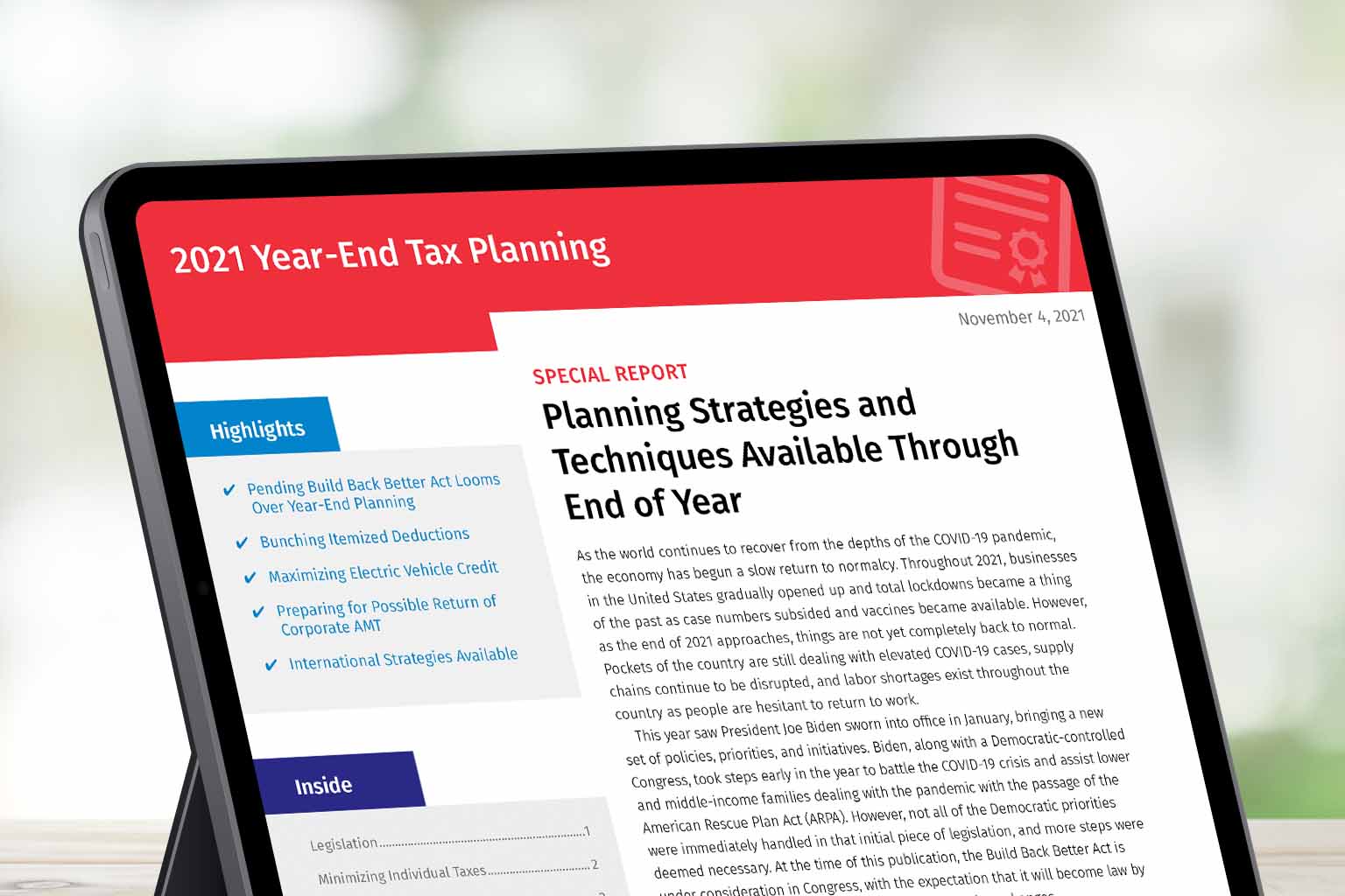 Web We remind you that tax planning should be addressed throughout the year as an integral part of overall financial health. As of 11292021 the Build Back. Web The letter is divided into four sections.